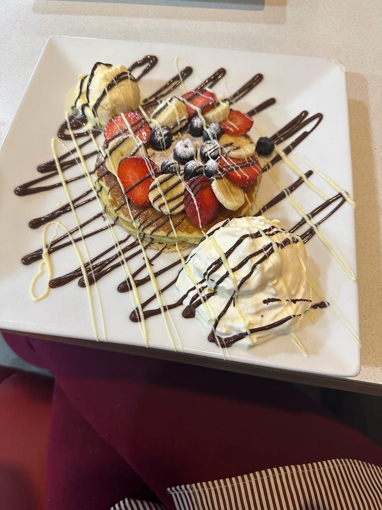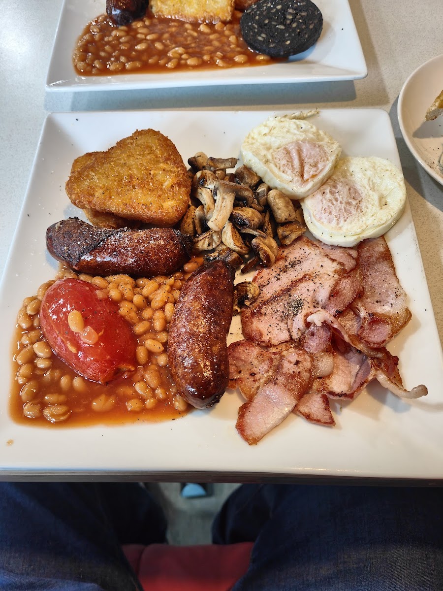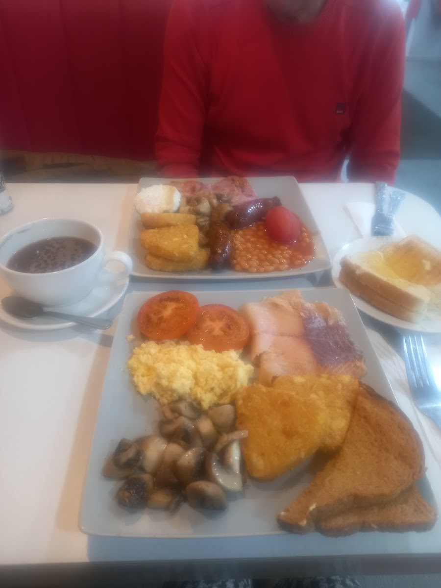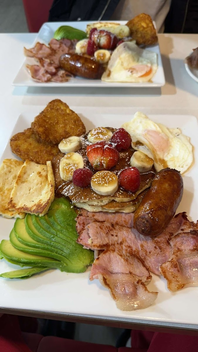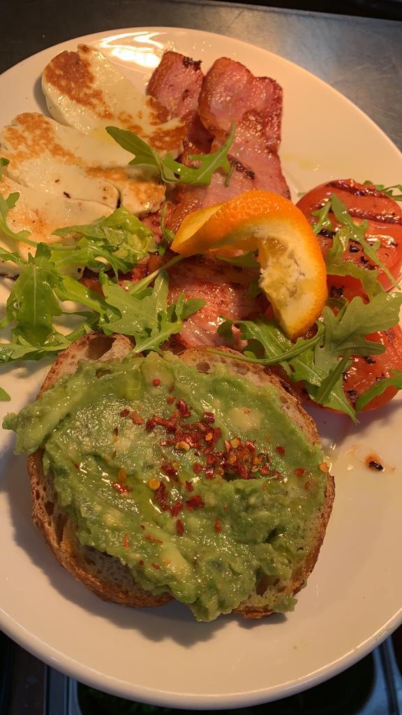 We had the breakfast with avocado, pancakes with maple syrup and fruit, egg, 2 bacon rashers, butchers sausage, 2 hash browns and halloumi. Food tasted excellent, came prompt and all food was still hot, the owner also offered us both any free drink after we said we werent gonna get one. Very nice guy. Great service would reccomend to anyone. Breakfast was £14.95 and was worth every penny.